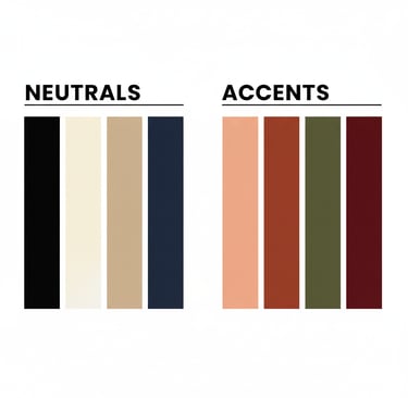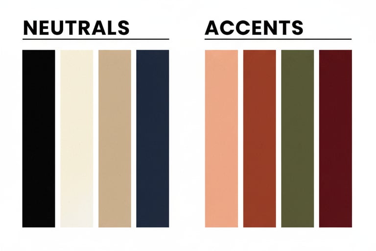Stick to 2-3 neutrals (black, ivory, navy) + 1-2 accents (rust, olive, or burgundy). This ensures everything pairs seamlessly.